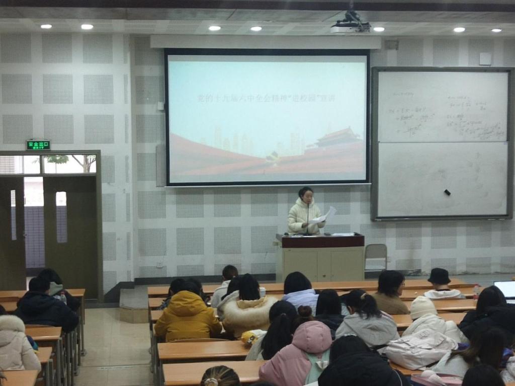同时,学院辅导员老师们也对全体学生进行了党的十九届六中全会精神宣讲。