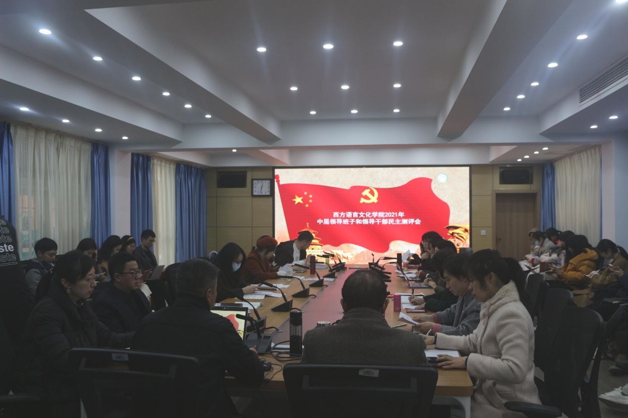 2021年12月16日中午,9728太阳集团党总支在文轩楼103会议室召开全院教职工大会,进行学院党政领导干部2021年度工作述职和民主测评。党总支书记苏雪主持会议。