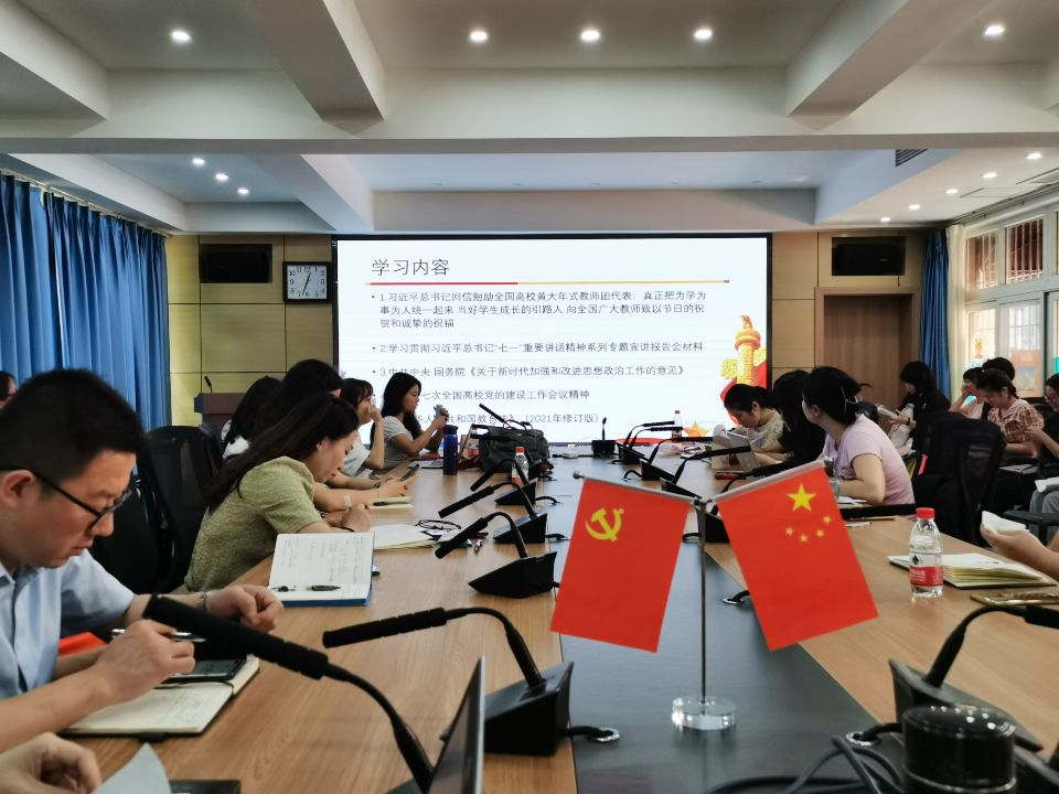 2021年9月24日下午,9728太阳集团在文轩楼103会议室召开了全院教职工大会,进行9月份的教职工政治理论学习。会议由组织员杜琨主持并领学。