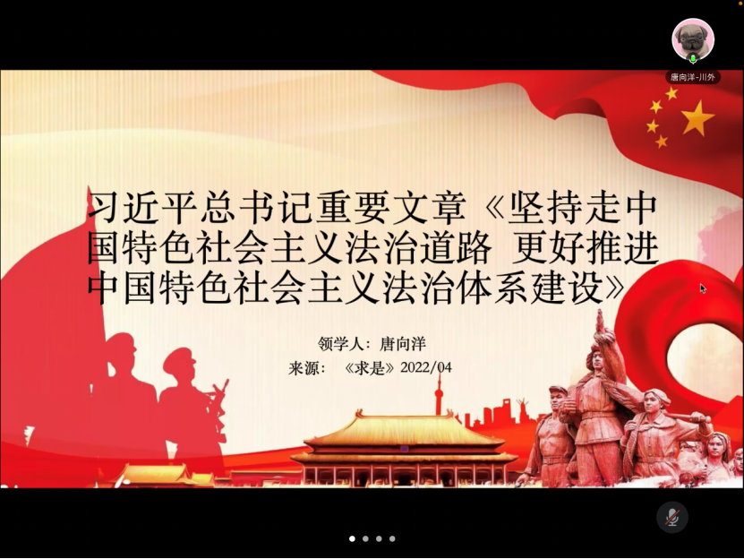 首先,唐向洋同志带领大家分别学习了《习近平总书记在十九届六中全会第二次全体会议上的讲话》、习近平总书记重要文章《坚持走中国特色社会主义法治道路,更好推进中国特色社会主义法治体系建设》、《习近平总书记在2022年春季学期中央党校(国家行政学院)中青年干部培训班开班式上的重要讲话》和《2022年全市教育工作会议》等文件。