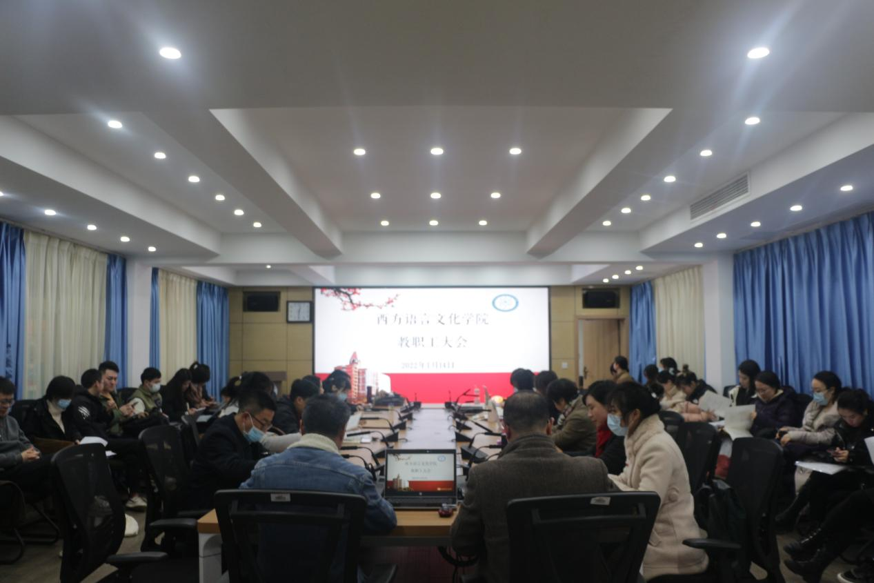 2022年1月14日中午,我院在文轩楼103会议室召开了期末总结大会,全体教职工参加了本次会议。