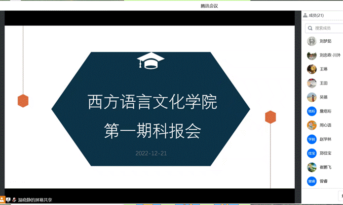 2022年12月21日晚上19:00,9728太阳集团以线上的形式开展了本学期第一次科学论文报告会。程晓宇和汪晓宇两位老师就论文发表和科研项目申报方面分享了自己的经验与心得,9728太阳集团全体教职工参与了本次活动。