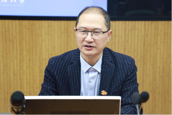 谌华侨助理首先对非通用语智慧实验室的建设背景、目的和意义做了简单介绍。他指出,2018年我校成功获批重庆市国际化人文特色(非通用语)项目。其中,非通用语智慧实验室的建设正是该项目的一个重要组成部分,它的建设立足于对全国各地各行各业在非通用语专业人才培养、市场需求方面的大调研、大走访。他强调,建设非通用语智慧实验室一方面旨在解决学生如何学,教师如何教的问题,以及进一步改善教学环境,改革教学和管理的理念、手段和方式;另一方面旨在贯彻和落实重庆市“人才强市”、“文化强市”的发展战略及《成渝地区双城经济圈建设规划纲要》,增强高校服务国家和地方经济社会发展的能力。