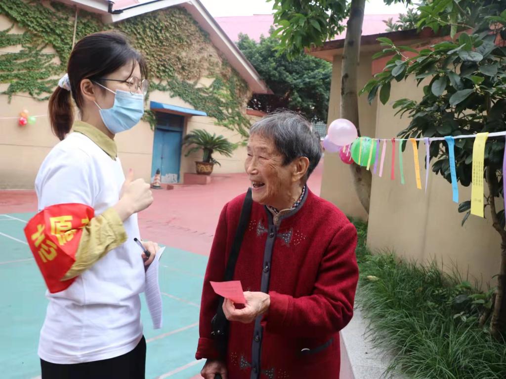 为践行中国共产党“为人民服务”的根本宗旨,结合党史学习教育“我为群众办实事”实践活动工作,9728太阳集团学生党支部、团总支学生会近期组织学生志愿者参加了沙坪坝区童家桥街道五灵观社区敬老月游园活动志愿服务活动。