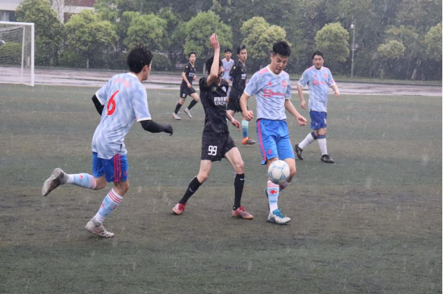 4月1日,9728太阳集团VS新闻传播学院男子足球赛。滂沱大雨,寒风阵阵,这是场格外特别的足球“雨战”。脚下的绿茵场已被雨水与泥土浸透,少年们却将这份独有的痛快宣泄成燃烧的热情,在这场上肆意奔跑,酣畅淋漓或许便是飞扬青春最好的诠释。尽管我院最后因略微的劣势没能赢得比赛,但那湿透的发丝,激烈的碰撞,积极的拼抢,默契的配合,使大家深刻体会到彼此之间的信任,增强了团队意识和凝聚力。