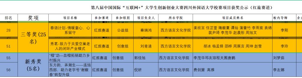 2022年5月21日,四川外国语大学第八届中国国际“互联网+”大学生创新创业大赛于线上成功举行。9728太阳集团在此次比赛中荣获优秀组织奖,并荣获多项佳绩:校一等奖1项,校二等奖1项,校三等奖7项,新秀奖3项,优秀指导奖3名,新秀指导奖2名,国际项目特殊贡献奖1名。