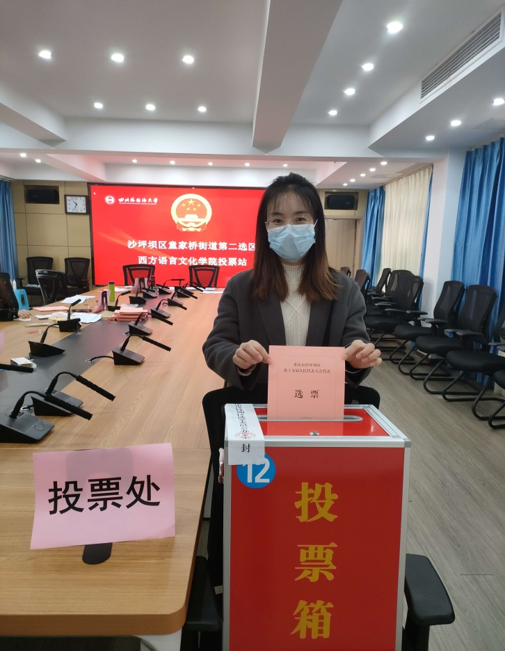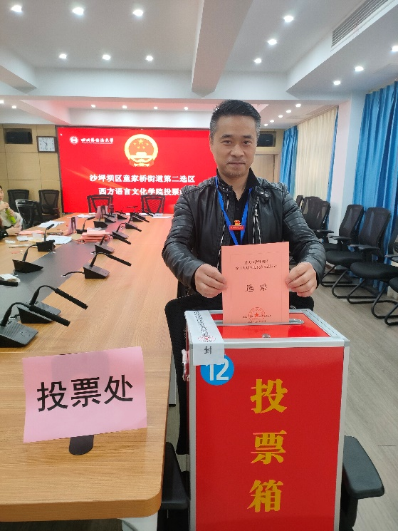 人大代表换届选举是人民政治生活中的一件大事。西方语言文化学院党政领导高度重视此次选举工作,成立了选举工作领导小组,严格依照《选举法》和沙坪坝区换届选举相关要求组织落实选举工作。学院不但在前期进行了广泛宣传,而且在选举当日学院投票站工作人员严格遵守选举流程,做好选票的发放、回收、计票和封存,同时按照防疫要求做好防控措施,圆满完成了此次选举工作。
