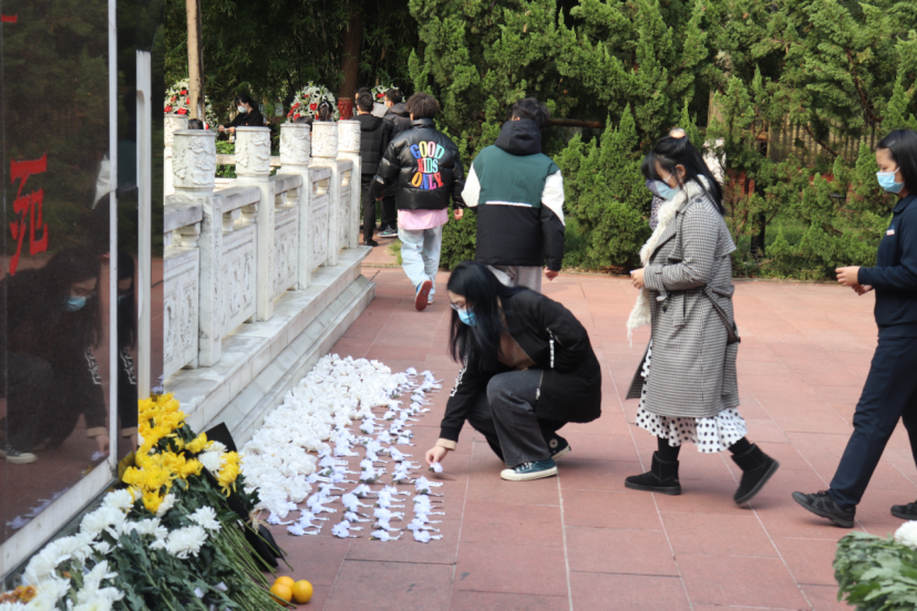 活动开始,烈士陵园,全体肃穆,大家认真聆听主持人讲述“11·27”这段历史的背景以及此次祭奠活动的意义,感受革命先烈无畏的英雄精神。接着,院长刘忠政和党总支书记苏雪代表全体师生向革命烈士敬献花圈。随后,全体师生向烈士墓默哀并三鞠躬,以表达对革命先烈的深切缅怀。