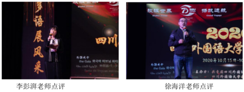 晚会结束后,李彭湃老师和徐海洋老师分别做了点评。李彭湃老师充分肯定了同学们的外语功底和舞台表现,并希望大家继续加强专业能力,争取创作更好的作品。徐海洋老师从音乐在戏剧表演中的重要作用等方面进行了专业点评,同时希望同学们在戏剧表演中演绎百态,体味人生。