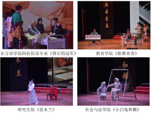 东方语学院阿拉伯语的《背后的冠军》、教育学院的《歌舞青春》、研究生院的《花木兰》、社会与法学院的《小白兔和糖》等作品结合多种艺术形式,带给观众全新的感受。
