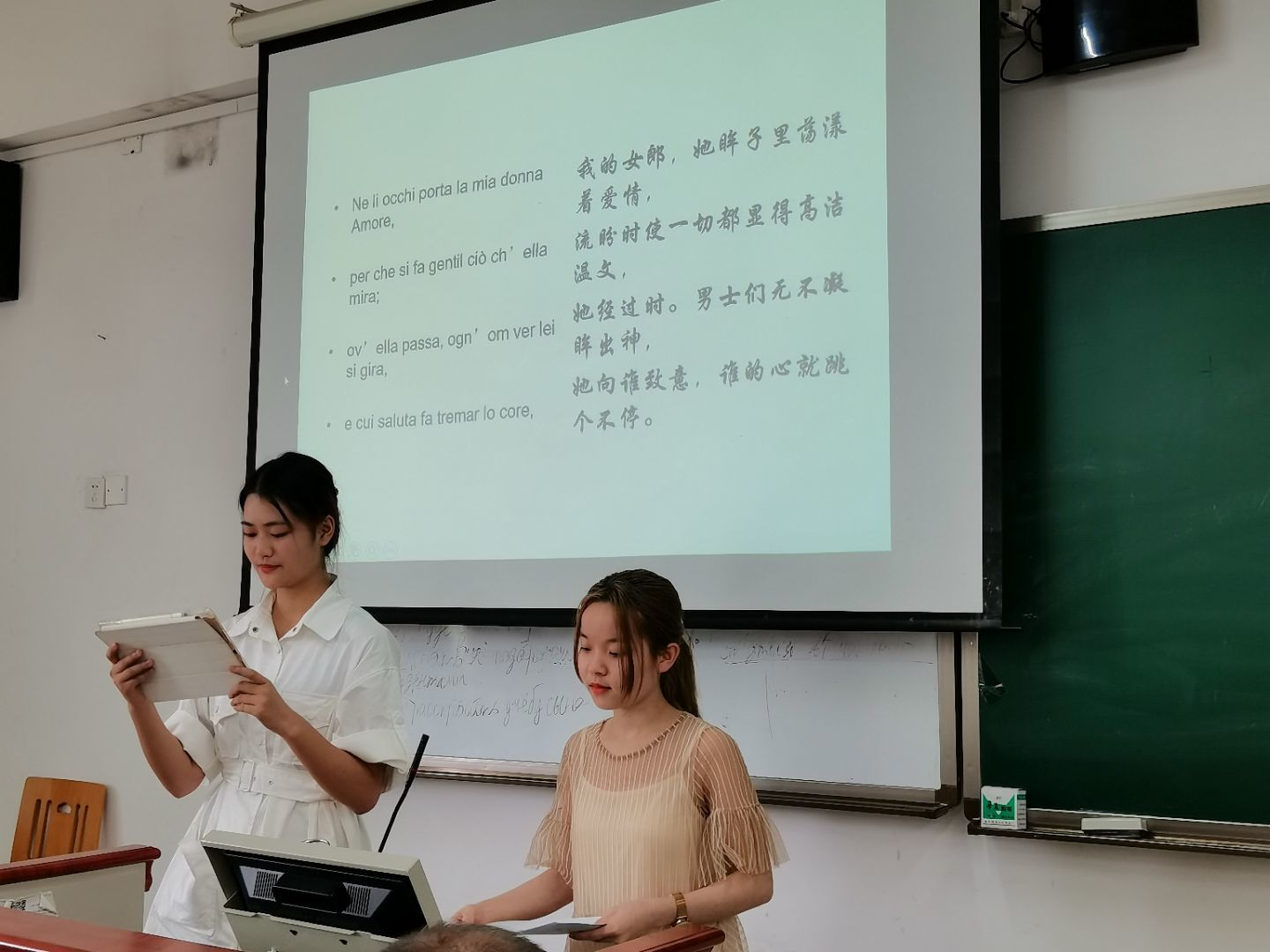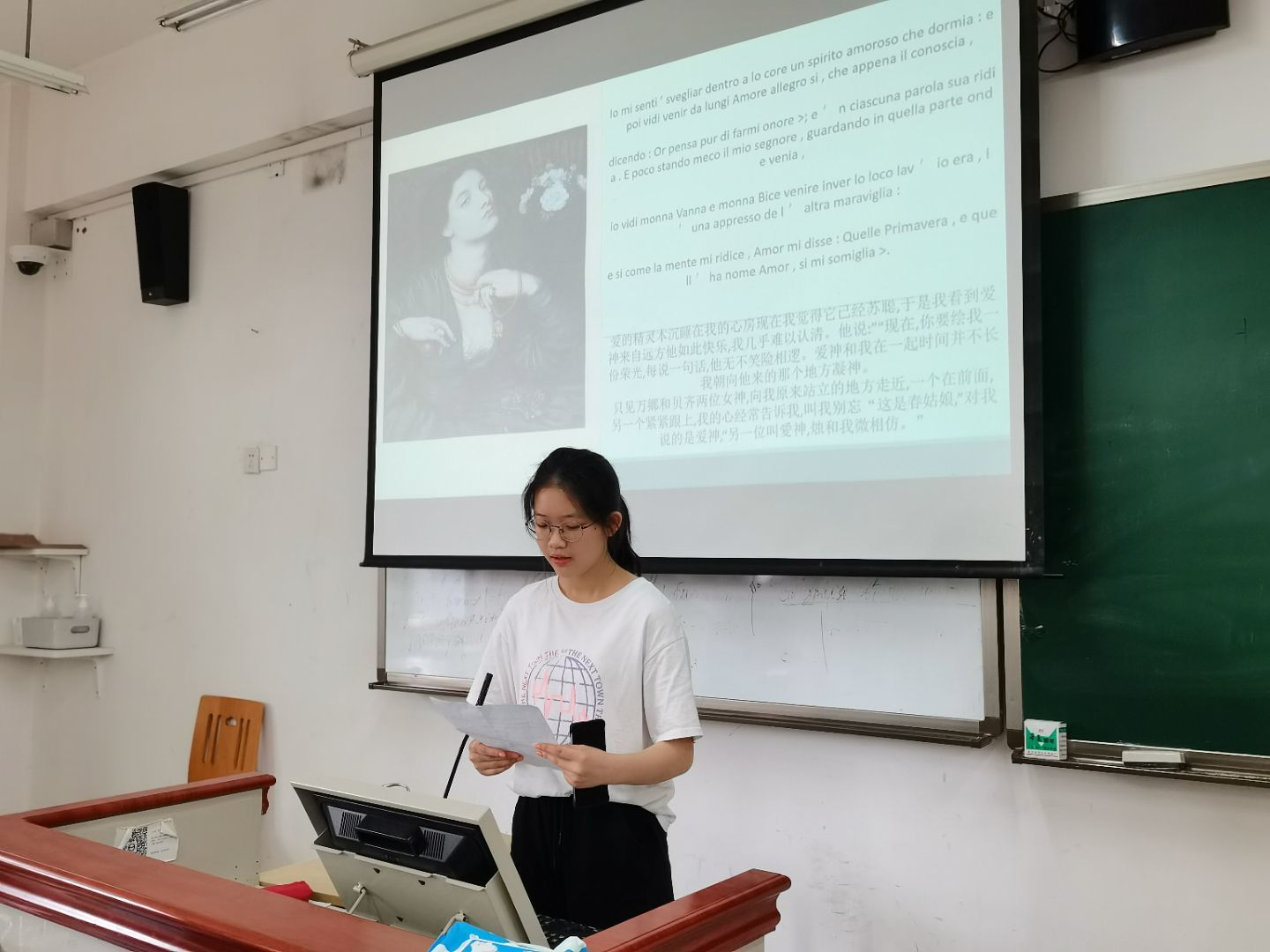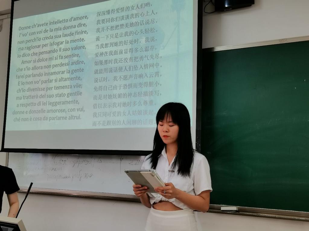 时值但丁诞辰700周年之际,同学们通过朗诵《新生》诗集不仅深刻缅怀了这位伟大的文学家,同时也进一步了解、感受到了意大利文学绚烂的诗词文化。