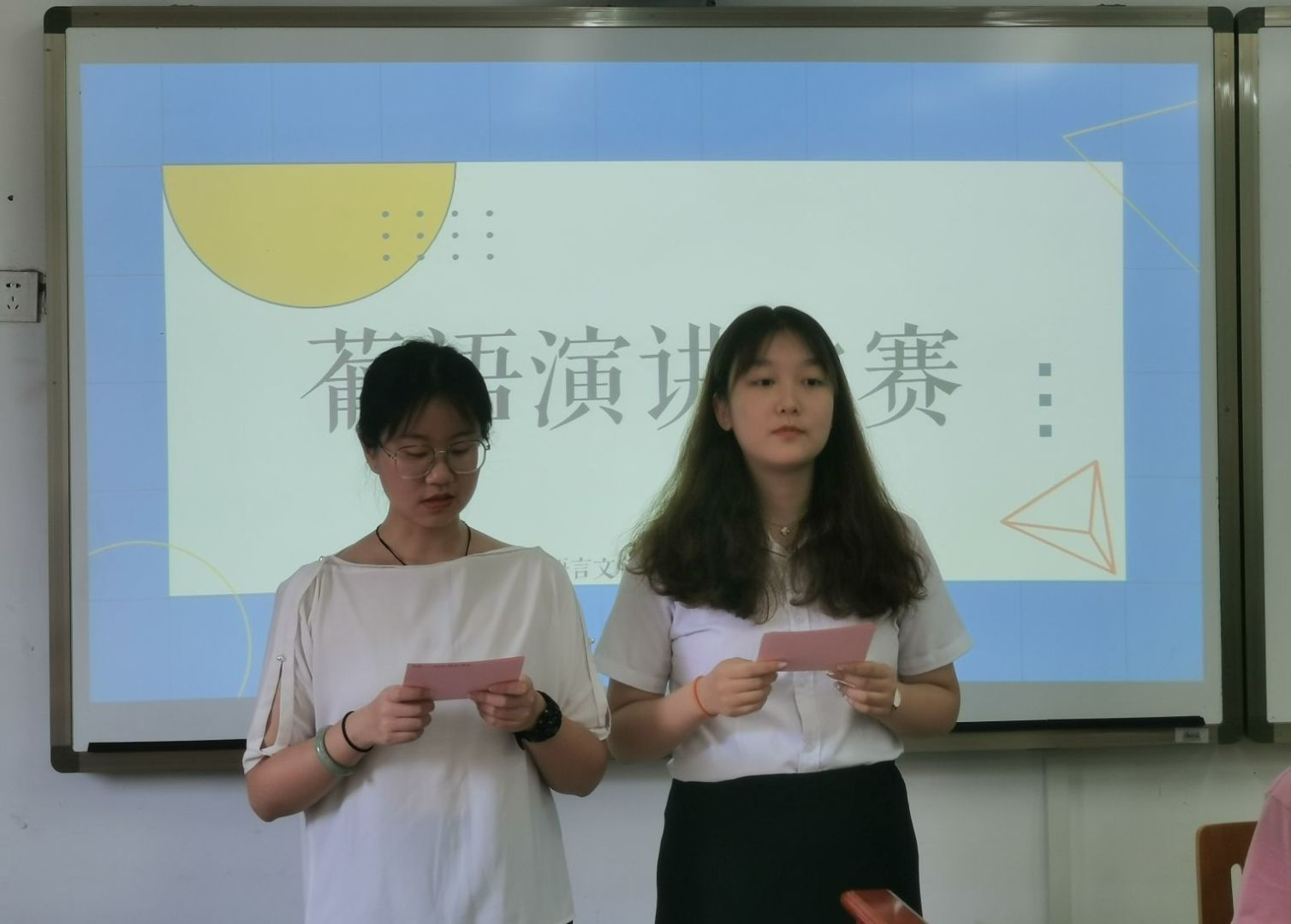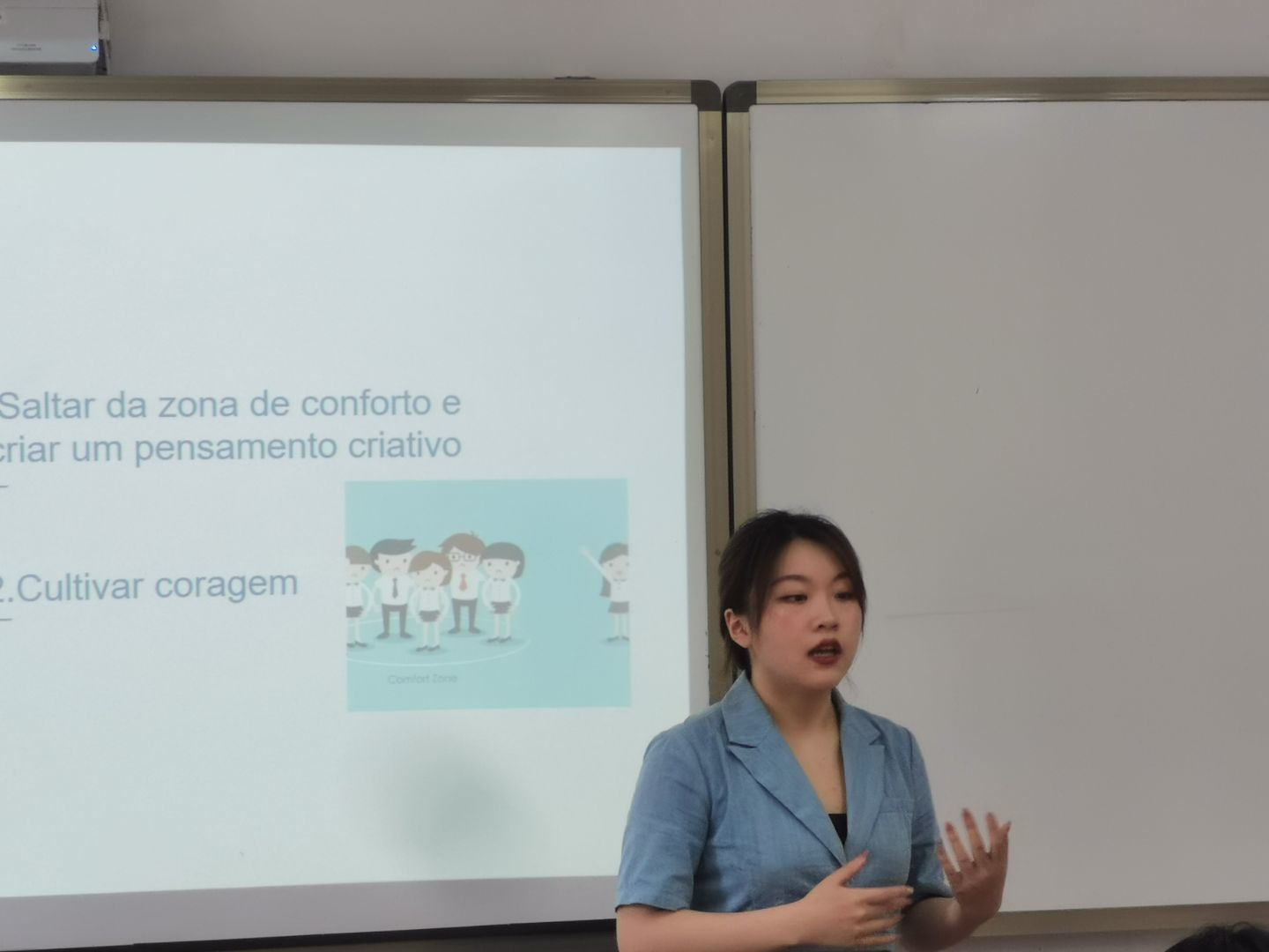 14:30,迎着初夏的骄阳,9728太阳集团葡萄牙语创新创业大赛在歌乐楼B505拉开了帷幕。本次大赛共有八名同学参加。周心语老师,桑金拉姆老师和外教Jackline作为评委老师出席了比赛。