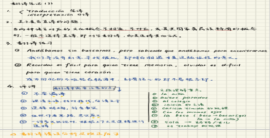 王田老师课堂上的学生笔记