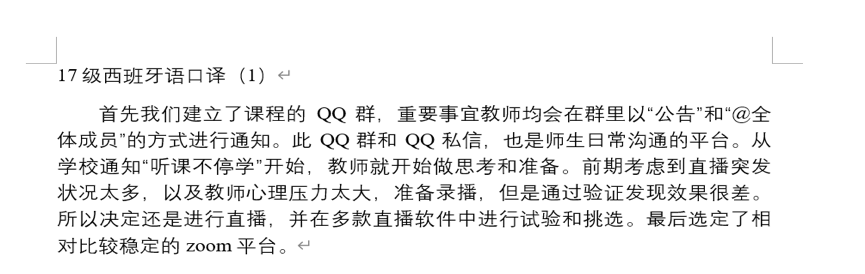 为深入贯彻落实教育部“停课不停教、停课不停学”的要求,在学校领导下,西葡语系在2月1日即成立了疫情防控工作小组,领导各教研室制定预案,积极筹备、组织线上教学活动,以保证疫情防控期间的教学活动能顺利推进。