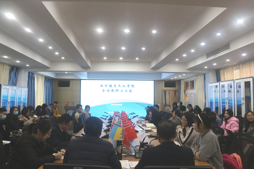 接下来,苏雪书记对学院党建工作进行了部署,并带领全院教职工进行政治理论学习。2月26日学校召开了中干会议,苏雪书记传达了董洪川校长关于2021年学校重点工作内容,涉及疫情防控常态化、十四五发展规划、民生工程建设、师生管理等各方面。此外,还传达了邹渝书记的专题辅导报告,要求深学笃用党的十九届五中全会精神和习近平总书记重要讲话精神要正确处理“十四五”期间川外发展的九个关系。随后,苏雪书记主持了学院工会委员的选举。经过组织推荐、候选人自我介绍及民主投票,最后选出陈旭老师为工会主席,杜琨、李左娜老师为工会委员。