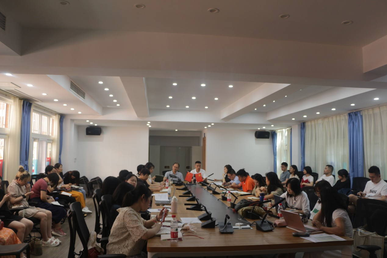 首先,党总支书记苏雪向全体教师通报了《中共四川外国语大学纪律检查委员会关于加强中秋、国庆期间作风建设的通知》,他强调2021年中秋、国庆临近,大家要继续坚守重要节点,在新冠肺炎疫情常态化防控、节假日的交汇期,要把落实中央八项规定精神和纠正“四风”作为一项重要政治任务,认真贯彻落实习近平总书记关于制止餐饮浪费行为的重要指示精神,希望全体党员群众尤其是党员干部自觉遵守党的纪律规定,严肃防范违规发放劳务费、违规报销、奢靡享乐等显著突出问题和收送电子红包、私车公养等隐形变异问题,持续巩固拓展落实中央八项规定精神成果,营造风清气正的节日氛围。学院党政班子要落实主体责任,从严从紧抓好各项防控措施落实,做好自身防控举措,严防疫情防控中的形式主义,做到守土有责、守土尽责。