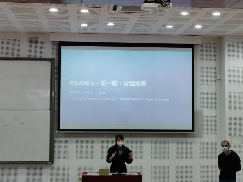 2021年11月4日上午10时至12时,意大利语专业俗语谚语趣味赛于西区歌乐楼C2-2阶梯教室顺利举办。活动由李书竹老师策划主持,崔鹏飞老师,外教Fabrizio Leto老师担任比赛评委。